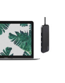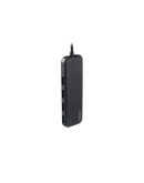 Корпус хаба Rombica Type-C Hub изготовлен из прочного матового пластика. О работе устройства сигнализирует небольшой светодиод. У основания корпуса USB-кабель дополнительно усилен прорезиненной заглушкой во избежании повреждение при множественных изгибах.