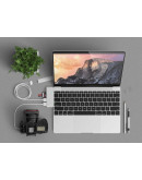 Компактный хаб позволяет навести порядок на рабочем столе и избавиться от ненужных адаптеров и зарядных блоков. Благодаря его малому размеру хаб всегда можно держать под рукой, положив в карман, папку с документами, рюкзак или клатч.