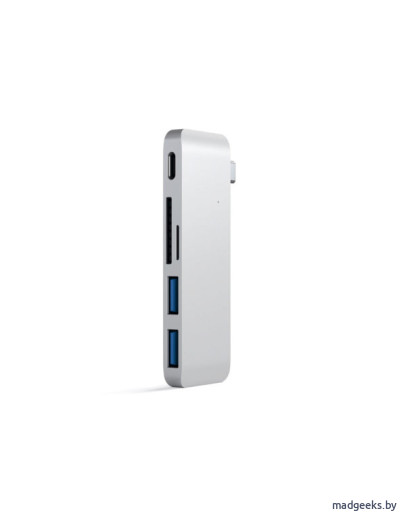 Satechi Type-C USB Passthrough Hub – это USB-хаб, с помощью которого вы сможете подключить к компьютеру смартфоны, планшеты, различные USB, SD и microSD-накопители. Кроме того, при наличии зарядного блока с помощью хаба можно заряжать устройства. Данная модель хаба оснащена портом USB Type-C, что делает его подходящим для зарядки MacBook 12”. С выхода Type-C ㅡ 2 порта USB 3.0, порт Type-C для зарядки и карт-ридер.
