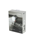 Фонарь крепится на руль с помощью тугого фиксатора. Корпус Rombica LED F3 изготовлен из алюминия, что делает его устойчивым к повреждениям. Питание аксессуара осуществляется от аккумуляторного блока, в который устанавливаются 4 элемента 18650 (аккумуляторы уже включены производителем в комплект поставки). Одной зарядки фонаря хватает на 3,5 часа непрерывной работы.