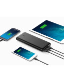 Anker PowerCore 26800 заряжает все совместимые с USB устройства с силой тока до 2,4 А. Каждый порт аккумулятора оснащен двумя современными технологиями PowerIQ и VoltageBoost для того, чтобы зарядка была максимально эффективной и безопасной: устройство автоматически определяет тип подключенного девайса и подает на порт именно ту мощность, которая необходима для его зарядки. Емкости в 26800 мАч хватает, чтобы продлить сразу двум iPad Pro или дважды зарядить три смартфона со средней энергоемкостью.