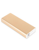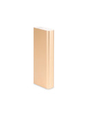 Внешний аккумулятор Rombica AZ-220 выполнен в прямоугольном алюминиевом корпусе серебристого либо золотистого цвета. Гаджет обладает компактным размером 16,1 х 6,7 х 2,4 см, однако он достаточно тяжелый: 469 г. В карман одежды этот повербанк не положить, зато он отлично входит в любой женский клатч или боковой карман рюкзака. Все интерфейсы расположены на одном торце аккумулятора: здесь есть два выхода USB, а также входы microUSB и Lightning. Рядом с разъемами расположились кнопка проверки оставшегося заряда и светодиодный индикатор.